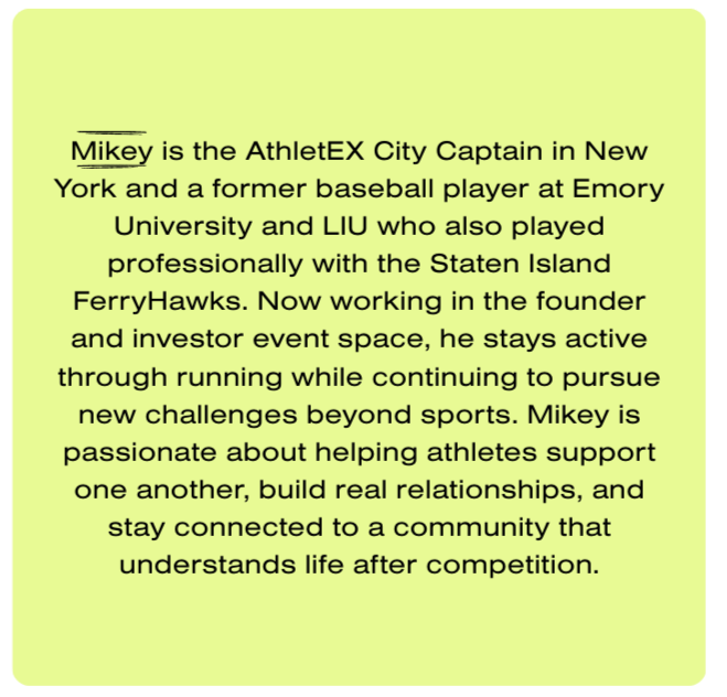 AthletEX was created for former college and professional athletes navigating the transition out of competitive sports. For many athletes, the structure, community, and identity built through years of competition suddenly disappear after graduation or retirement. The game ends, but the drive, discipline, and desire for connection do not.